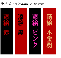 (1) 素地は赤と黒の2種類。線描は漆絵(赤・黒・ピンク)、または蒔絵(本金粉)から選択できます。